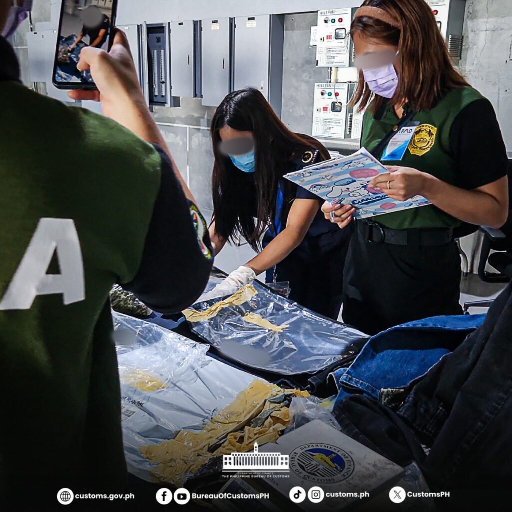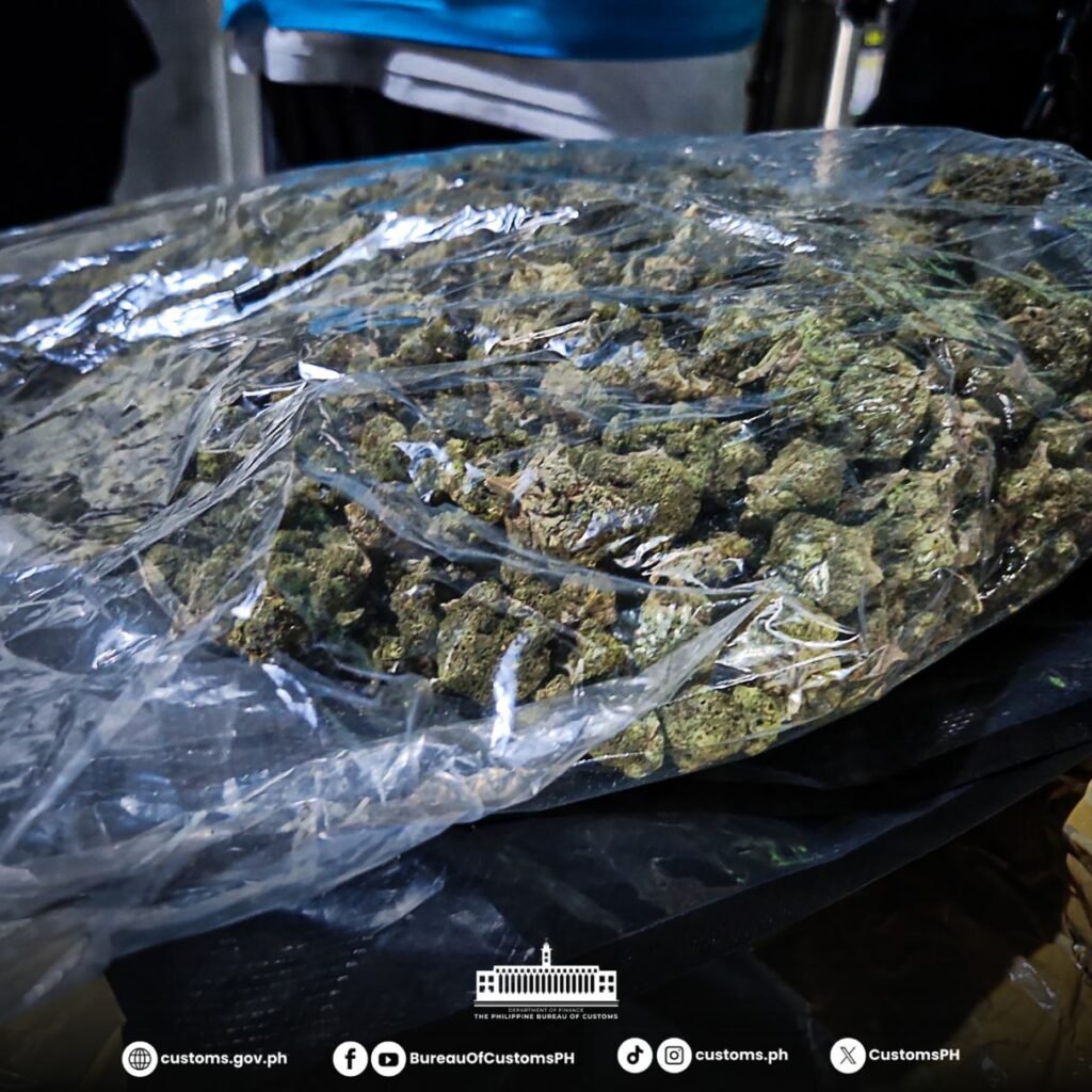 The Bureau of Customs (BOC), through the Port of Clark and the Clark Inter-Agency Task Force Against Illegal Drugs (CRK-IATFAID), seized 712 grams of high-grade marijuana (kush) valued at approximately ₱1.068 million. Declared as “jeans,” the shipment came from California, USA, and arrived in the Philippines during the second week of January 2026, bound for Batangas.