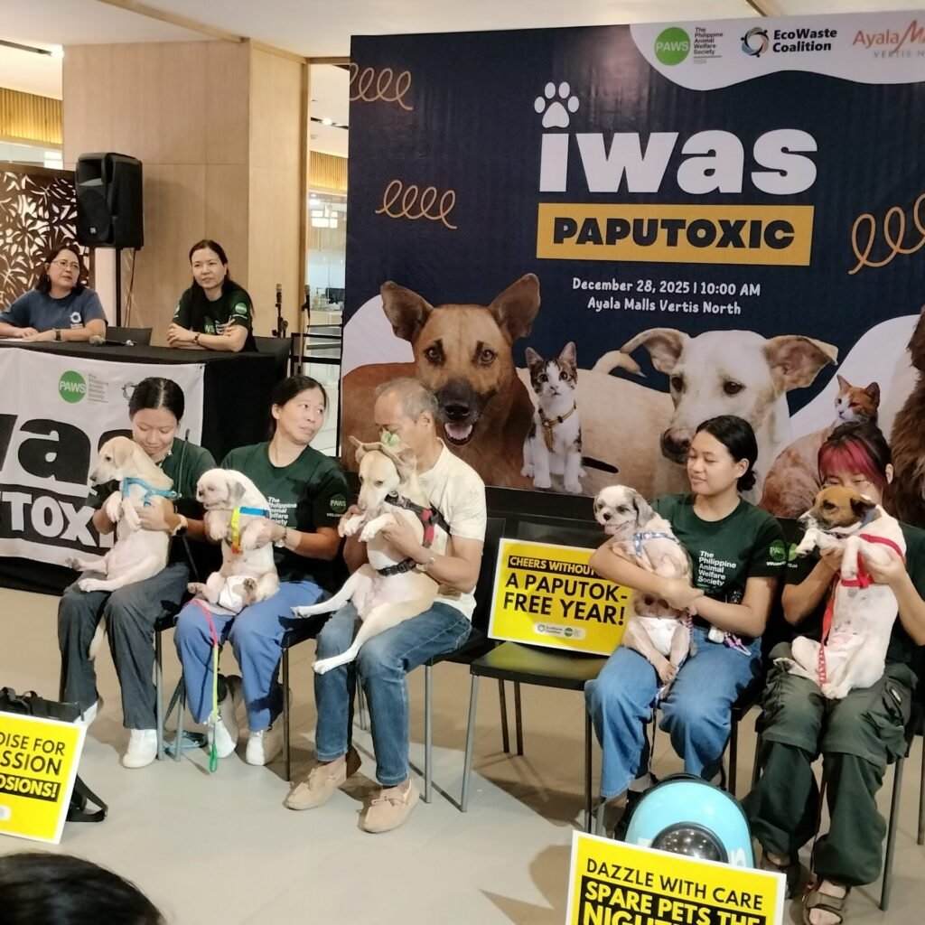 To protect cats and dogs, the children and the environment from harm, the EcoWaste Coalition and the Philippine Animal Welfare Society (PAWS) renewed their call for a firecracker- and fireworks-free New Year through an “Iwas PapuToxic” event held on December 28, 2025 at Ayala Malls Vertis North in Quezon City.