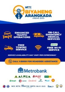 Around 2,000 traffic, toll, and emergency personnel will be on duty across MPTC expressways, in coordination with the PNP, LGUs, and key agencies. At CAVITEX, “Biyaheng Arangkada” will be implemented with PEA Tollway Corporation, a subsidiary of the Philippine Reclamation Authority.