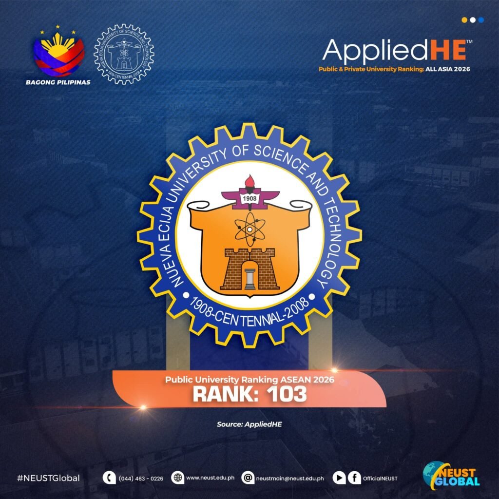 CABANATUAN CITY — The Nueva Ecija University of Science and Technology (NEUST) earns international recognition after being included in the AppliedHE Public University Ranking 2026.