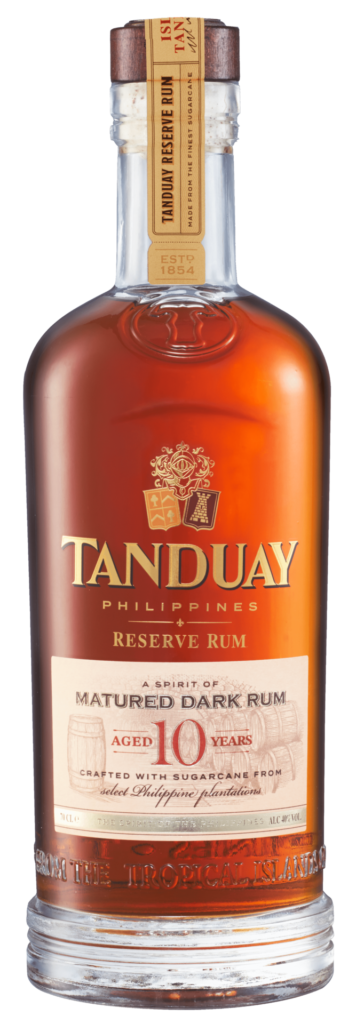 Tanduay Reserve Rum 10 Years is one of Tanduay’s acclaimed premium rums. It is a medium rum that honors time and tradition, as it is aged for 10 years in ex-bourbon barrels. Perfect for both sipping neat or in cocktails, it has aromas of dried fruits, toasted oak, vanilla, and butterscotch. On the palate, this dark amber-colored rum offers flavors of caramel, vanilla, and dried fruits, finishing with woody notes, raisins and dark chocolate.