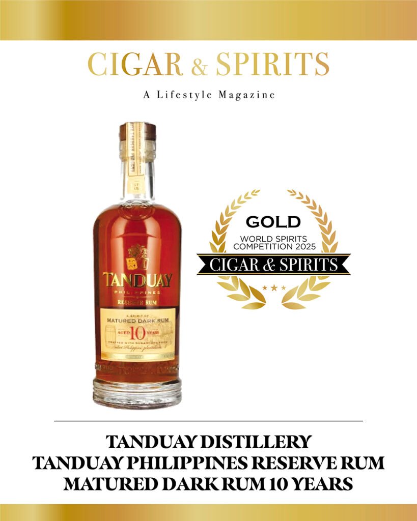 MANILA, Philippines — Filipino excellence once again took center stage as Philippine-made rums Tanduay Reserve Rum 10 Years and Tanduay Double Rum received gold medals at the prestigious World Spirits Competition, a contest that gathers the finest products in the global spirits industry.