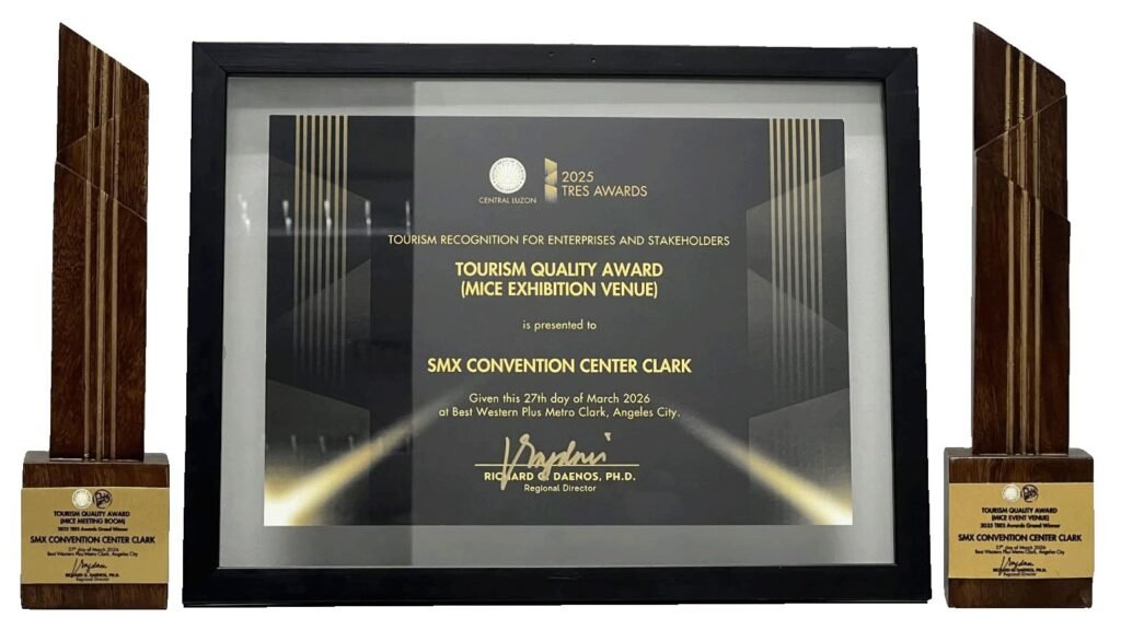 CLARK — SMX Convention Center Clark, a premiere convention center under the SM Hotels and Conventions Corporation (SMHCC) portfolio, emerged as a top awardee at the Tourism Recognition for Enterprises and Stakeholders (TRES) Awards 2025 organized by the Department of Tourism Region 3.